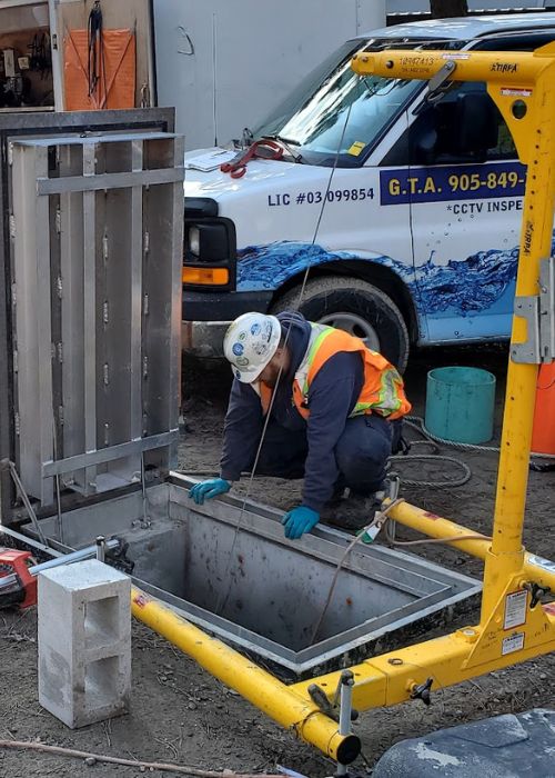 Safety is a priority on all job sites, but of course in the case of sewers, it is under the job site. When entry into a manhole is required for repair or inspection, we have the harnesses, the tripod (recovery gear), the air testing equipment and the trained employees to safely carry out work below ground.